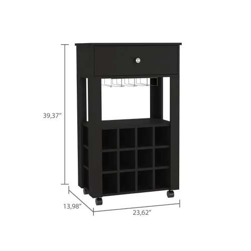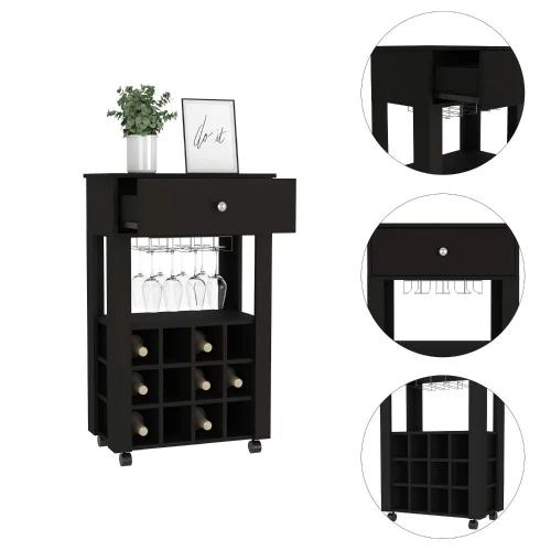 If you enjoy wine and want a contemporary setting in which to store your favorite bottles and glasses, this bar has both. It includes twelve compartments for keeping your wine organized and fresh, as well as the capacity to store your glasses, a huge drawer and caster for improved movement and adaptability.