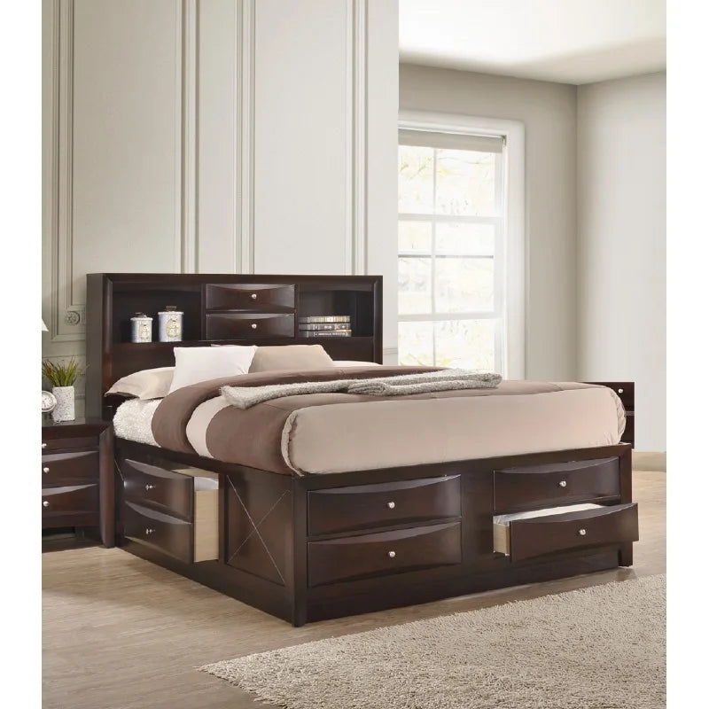 This Collection is a perfect set of furniture which not only provides a style to your bedroom but also meets your storage requirements. The bed drawers, chest, dresser, and nightstand offer you an ample of space to keep your clothes, personal care & make-up products, and more. The bed’s headboard has a space where you can showcase different decorative items. This set has a dark cherry finish which complements every home theme.