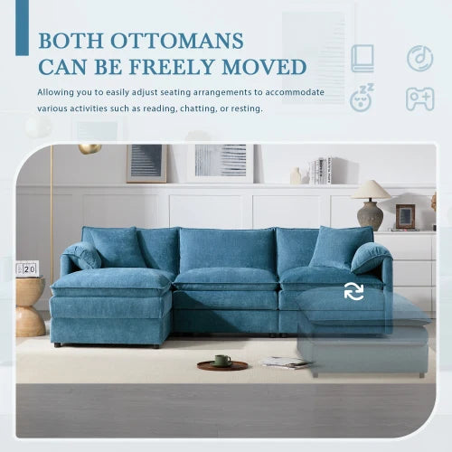 103.5" Modular Sectional Sofa with Deep and Wide Seat,L Shaped Cloud Couch Set with Double Cushions (blue)