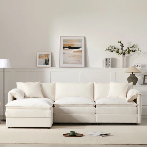 103.5" Modular Sectional Sofa with Deep and Wide Seat,L Shaped Cloud Couch Set with Double Cushions (cream)