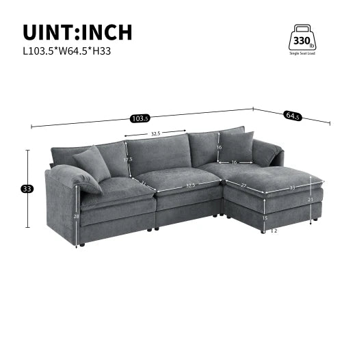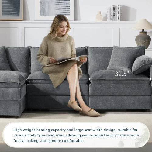 103.5" Modular Sectional Sofa with Deep and Wide Seat,L Shaped Cloud Couch Set with Double Cushions