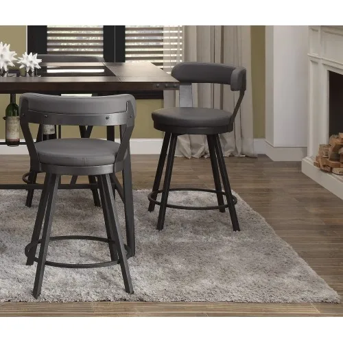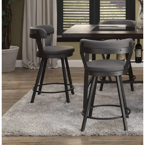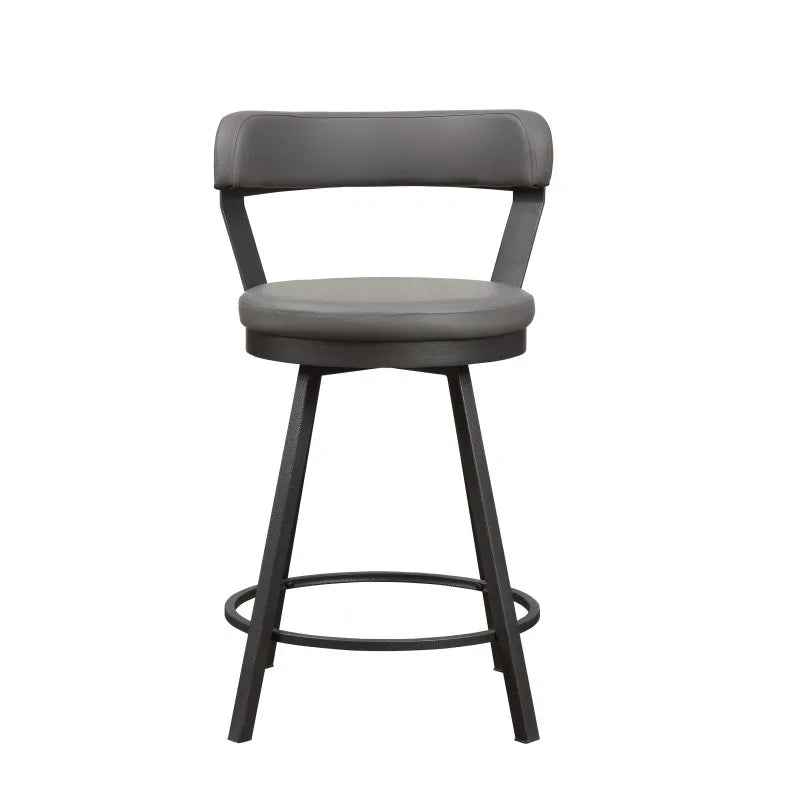 Perfectly styled for your casual dining space is the Appert Collection. This 24-inch counter height chair offering features a dark gray metal base that serves to support the gray faux leather round swivel seat. Allowing for perfect placement within your space, the Appert Collection is offered in a 29-inch pub height and 4 additional colors – black, brown, red and white.