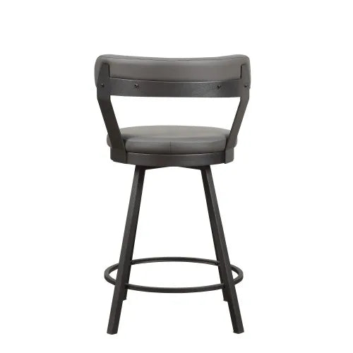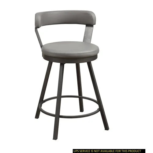 24-inch Counter Height Chairs Set of 2pc Gray Seat 360-degree Swivel Faux Leather Upholstered
