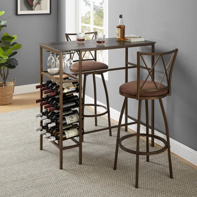 3-Piece Bar Steels Kitchen Dining Room Table Set Retro Brown Bar Chair for Dining Room