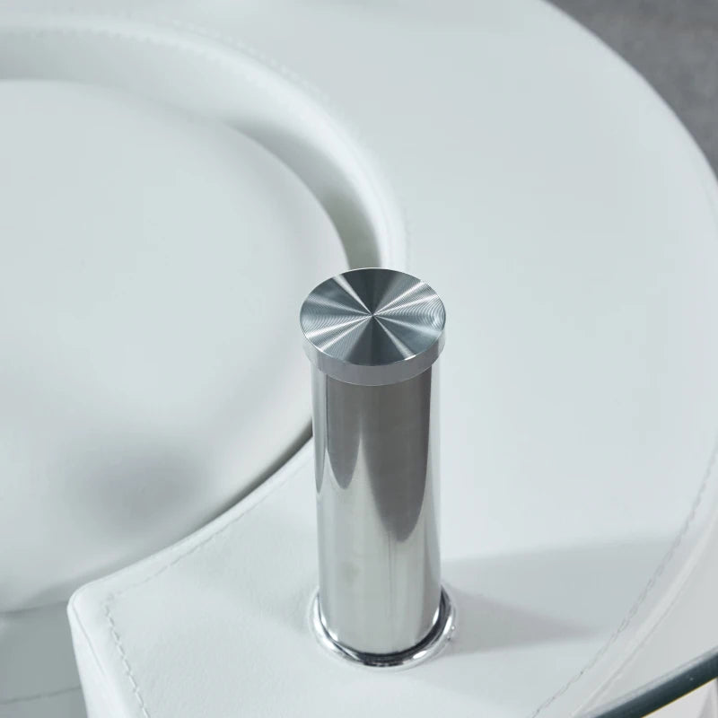Unique Design: It's made from 10mm/0.39"tempered glass top and leather surface S shape base. Four rounded silver stainless steel legs hold up a tempered glass surface. 49.21"L x 27.56"W x 17.72"H oval glass table top has enough space for you to place.