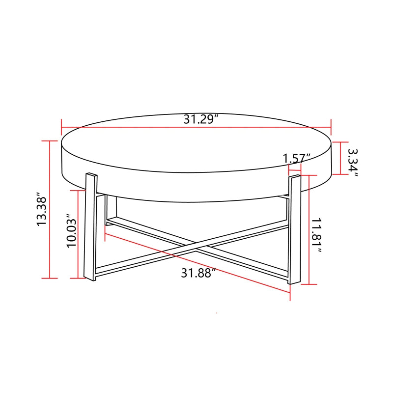 High-quality materials: This round coffee table is made of high-quality fir wood on the top and sides, while the back of the table is made of high-quality MDF.The round coffee table has a solid metal iron frame, which is durable and solid, and cross legs provide stability.