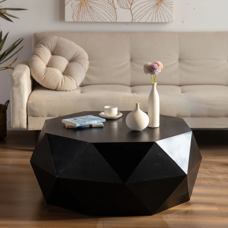 38"Three-dimensional Embossed Pattern Design American Retro Style Coffee Table,Black Tabletop