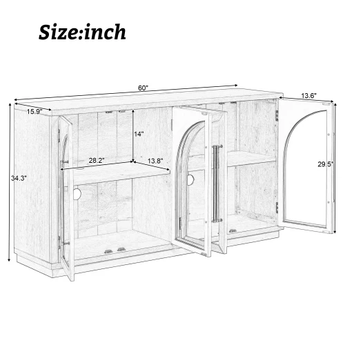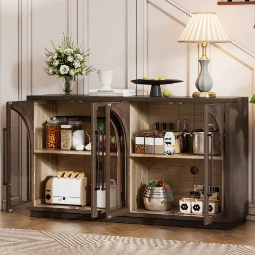 Unique Design:This arched cabinet adopts a traditional retro style, adding uniqueness and personality to your furniture. The arched design of the four cabinet doors, paired with superior glass material, makes this sideboard buffet cabinet with storage stand out. Equipped with four durable metal linear handles and clear lines on the backboard when the cabinet door opens, it’s a practical and stylish choice.