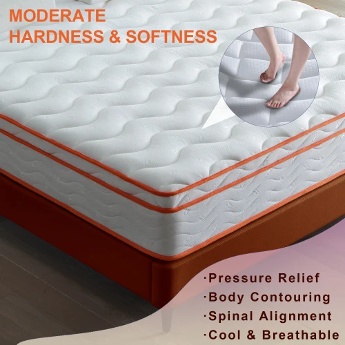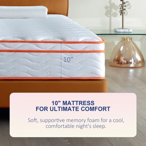 10 Inch Multilayer Hybrid Queen Mattress - Multiple Sizes & Styles Available, Ergonomic Design with Memory Foam and Pocket Spring, Medium Firm Feel, White+oranger