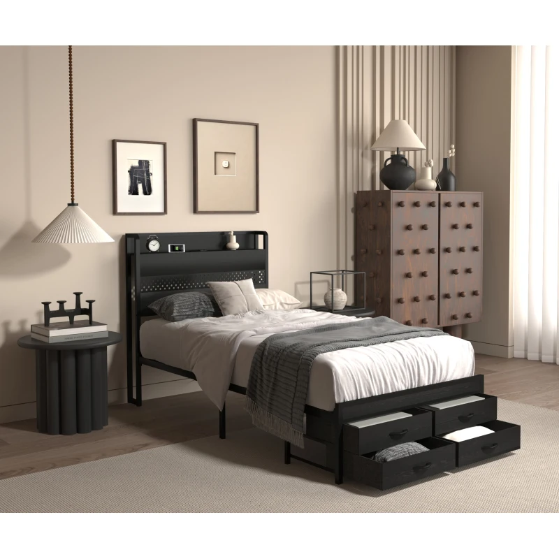 • Maximize Your Space: With four under-bed drawers, this single bed frame is a storage magician! Our bed frame with storage provides ample organization for bedding, clothing and personal items. Say goodbye to clutter and hello to smart storage solutions that enhance your bedroom efficiency.