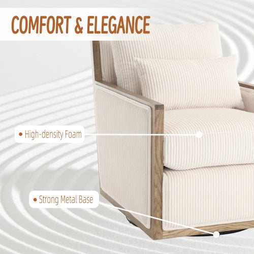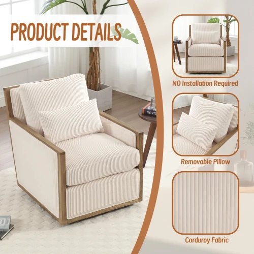 Beige color Corduroy Swivel Barrel Chair, Comfy Accent Sofa ,Leisure Arm Chair for Nursery, Hotel, Bedroom, Office, Lounge