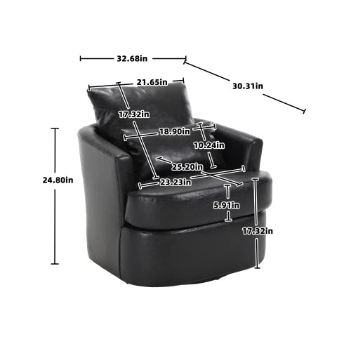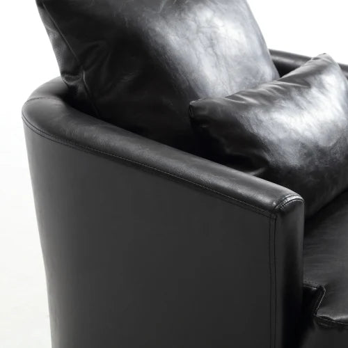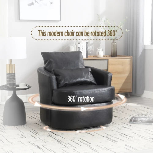black PU Swivel Barrel Chair, Comfy Round Accent Sofa Chair for Living Room, Leisure Arm Chair for Nursery, Hotel, Bedroom
