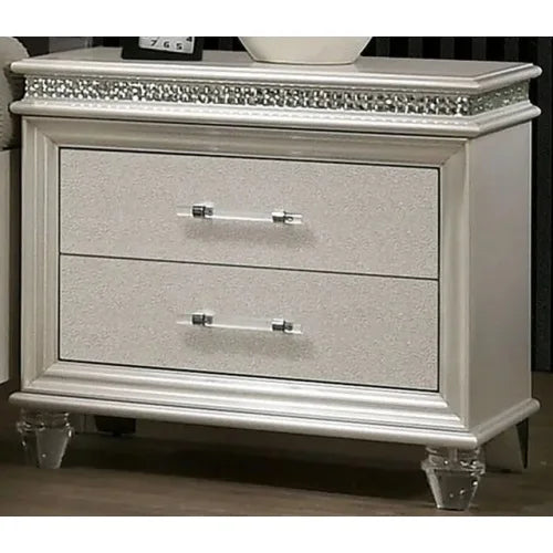Classic Pearl White 1pc Nightstand ,Felt-lined Top English Dovetail Acrylic Legs and Pull Handle