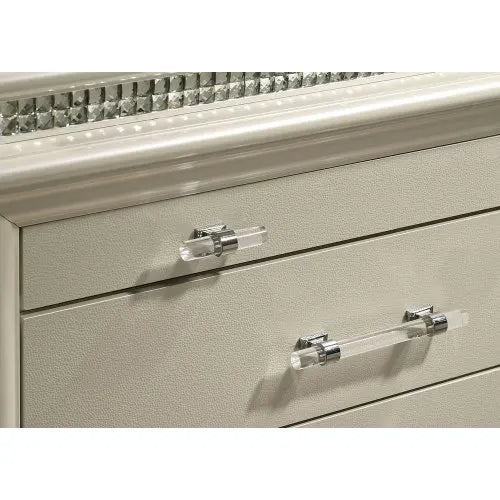 Create a room made for a princess with this night stand from the Maddie Collection. It features acrylic legs and crystal accents creating a glamorous aesthetic. Give into your glitzy side with this opulent set.