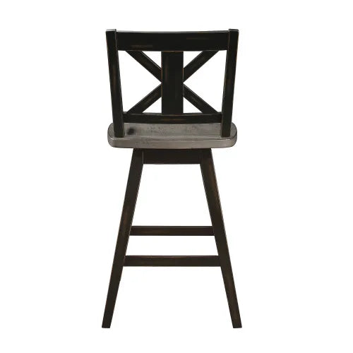 Counter Height Chairs Set of 2, Black X-Back 360-degree Swivel Chair Solid Rubberwood Kitchen Dining Furniture