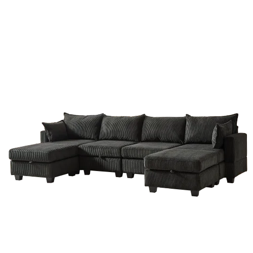 dark gray Sectiona Corduroy Sofa, Sectional Couches for Living Room U Shaped Sectional Couch.6 Seats Sectionals with Chaise