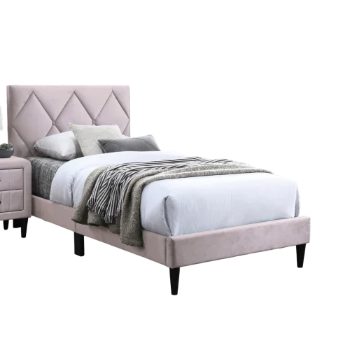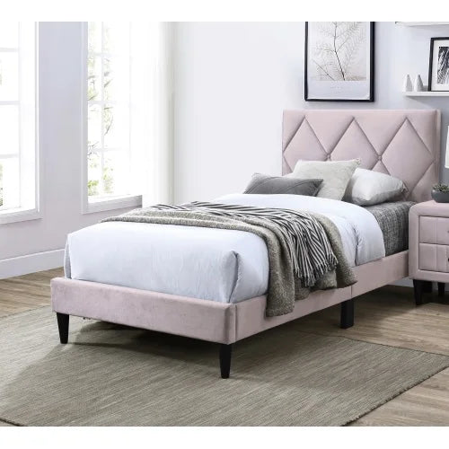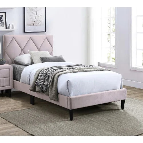 Full Size Bed w Adjustable Headboard 1pc Bedframe, Light Pink Velvet Upholstered Youth Bedroom Furniture
