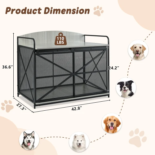 Suitable Size: The dimensions of the dog crate are 42.8"L x 27.3"W x 36.6"H, please measure your pet's height and length before purchasing to ensure it is comfortable enough. This dog crate furniture has a spacious interior for your furry friend, suitable for 1 large dog weighing no more than 80 lbs