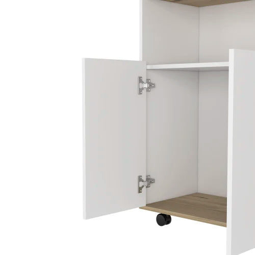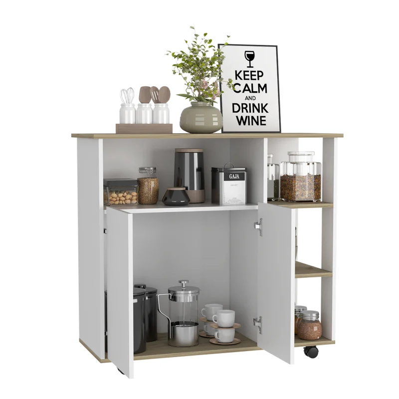 Kitchen Island, one cabinet, four open shelves, light oak/white finish