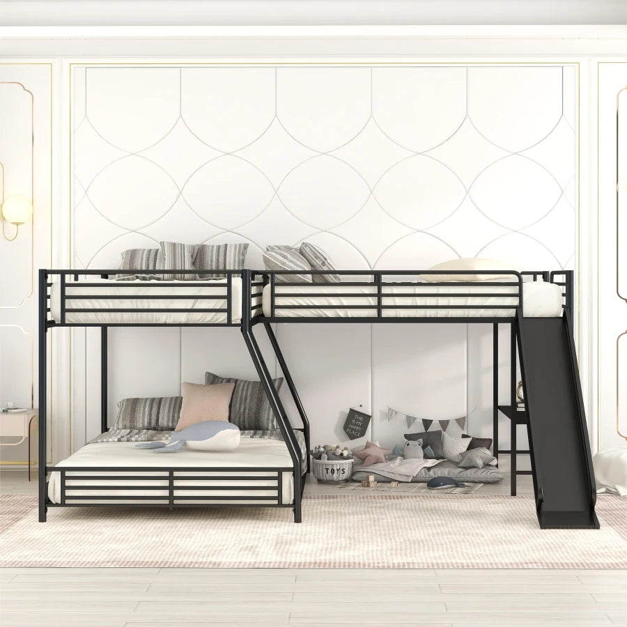 L-Shaped Twin over Full Bunk Bed with Twin Size Loft Bed,Built-in Desk and Slide,Black