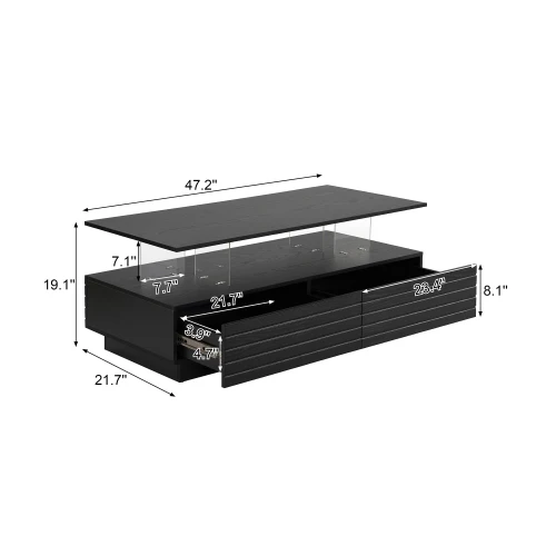 Modern Black Rectangular LED Lights Coffee Table with 2 drawers in 47.2