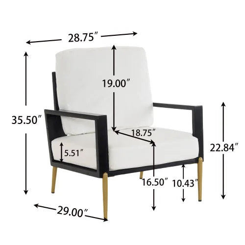 Modern Low Back White Upholstered Accent Armchair with Gold Metal Legs Single Sofa Chair for Living Room&Balcony, White