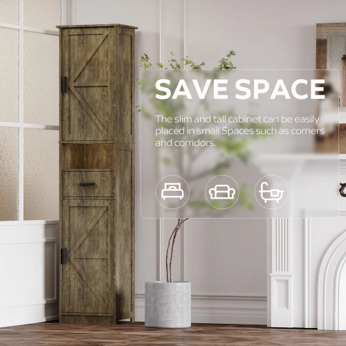 【Stable and Durable】This narrow tall cabinet is made of high-quality particleboard, giving you long-lasting durability and extraordinary experience. Meanwhile, 4 solid wood legs on the bottom and an anti-tip kit on the back add extra stability