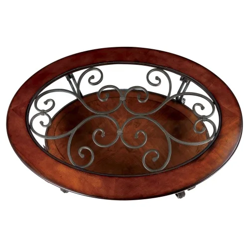 Traditional Style Brown Cherry 1pc COFFEE TABLE Open Bottom Shelf Ornate Design Glass Top Living Room Furniture
