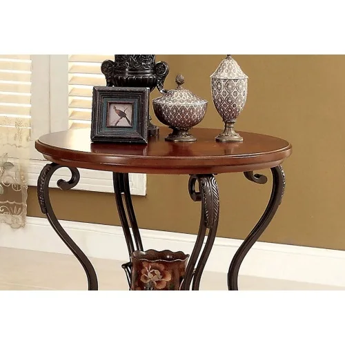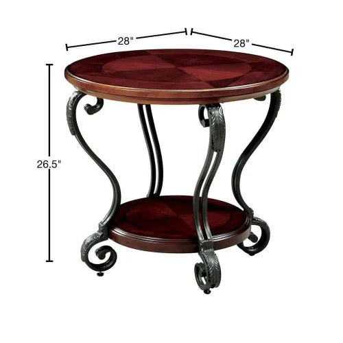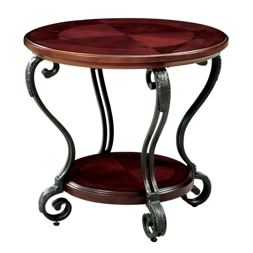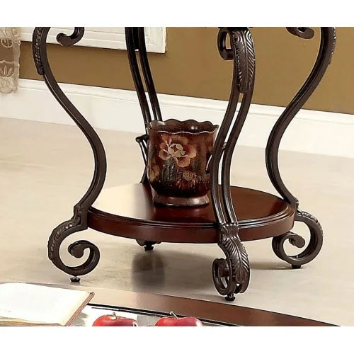 Traditional Style Brown Cherry 1pc END TABLE Open Bottom Shelf Ornate Design Living Room Furniture