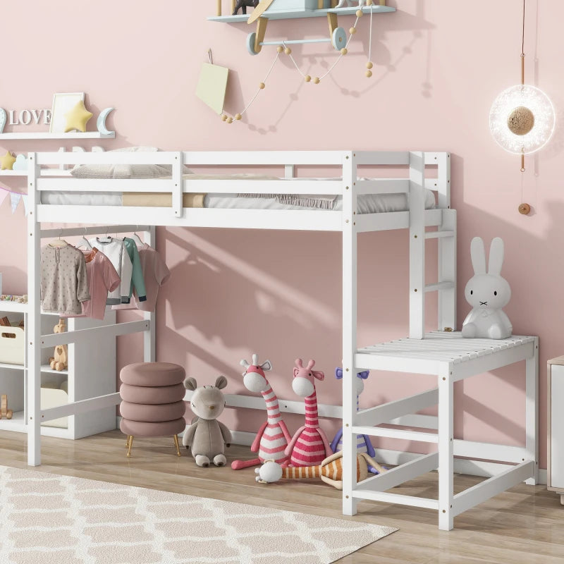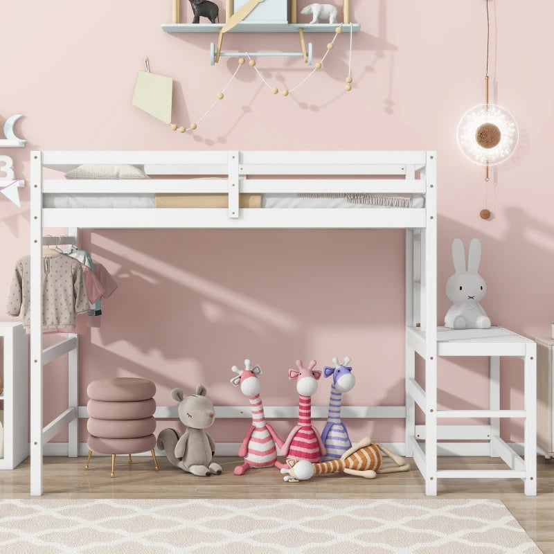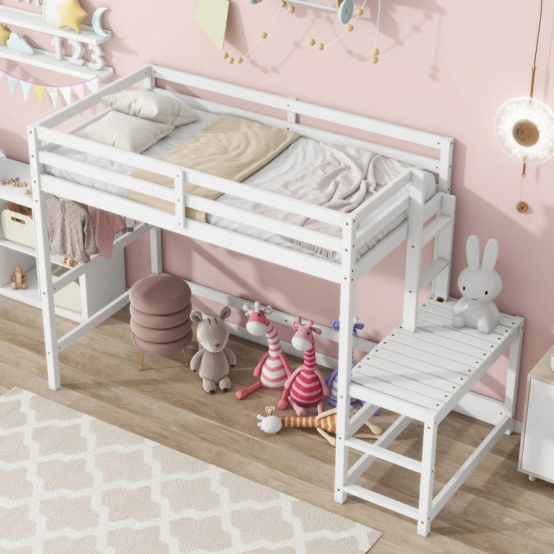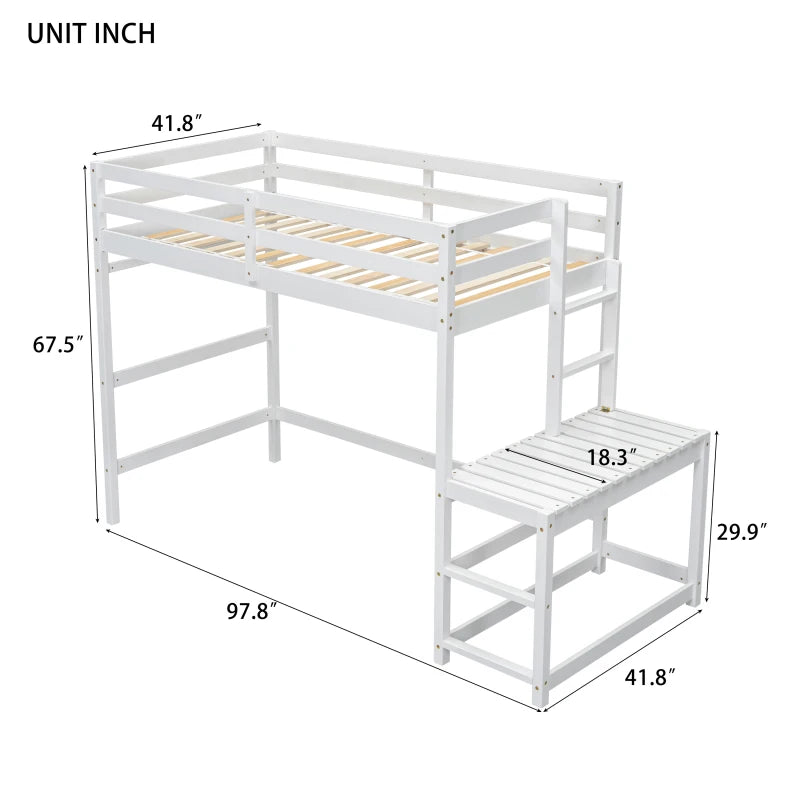 Twin High Loft Bed with Ladder landing Platform, Ladders, Guardrails,White