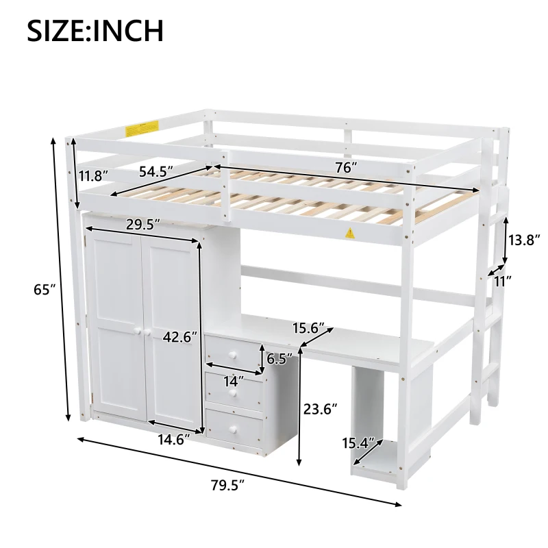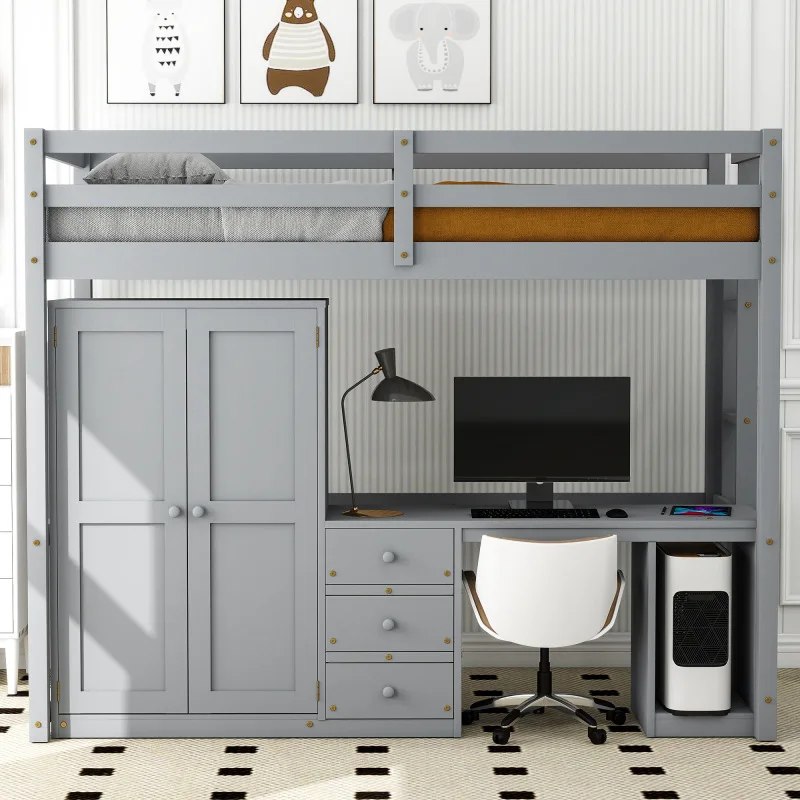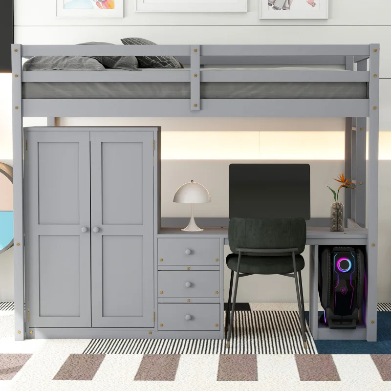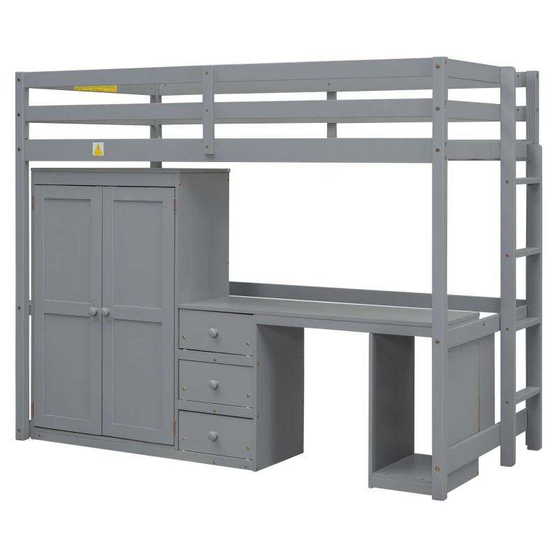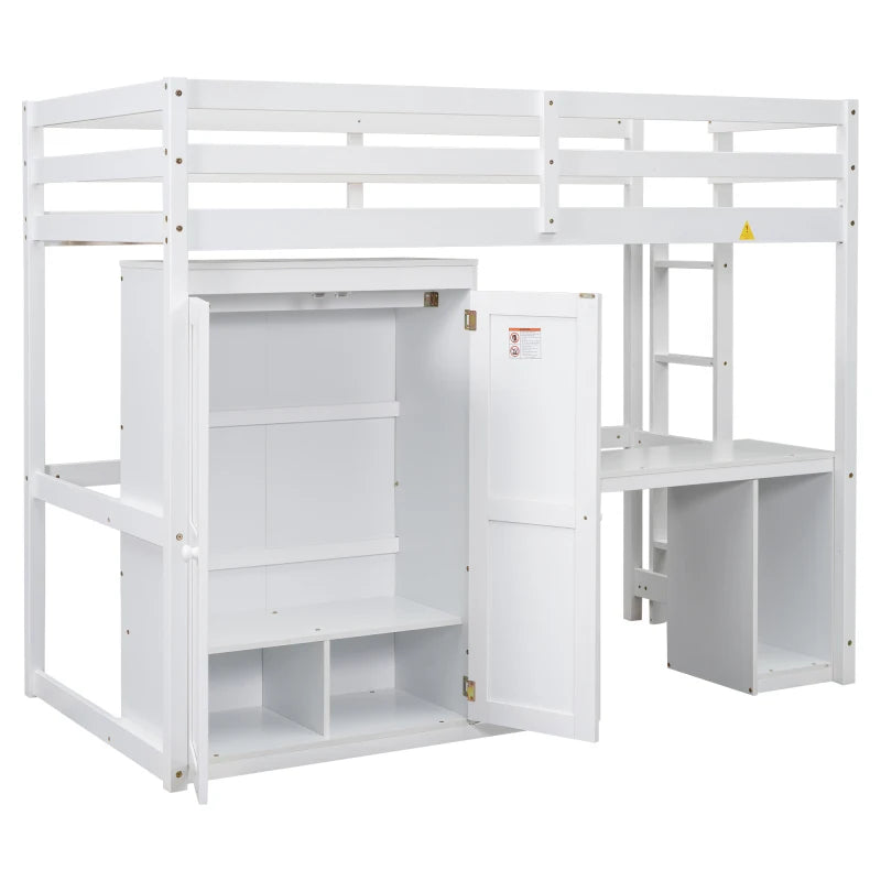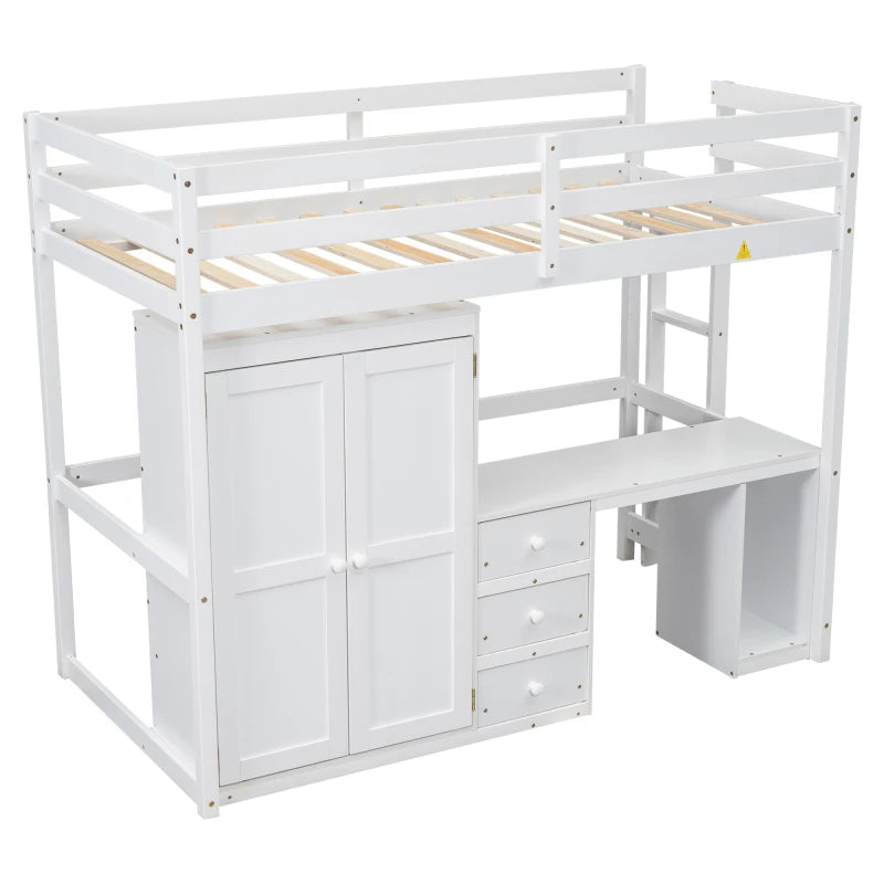 Twin Size Loft Bed with Wardrobe, Desk and Storage Drawers