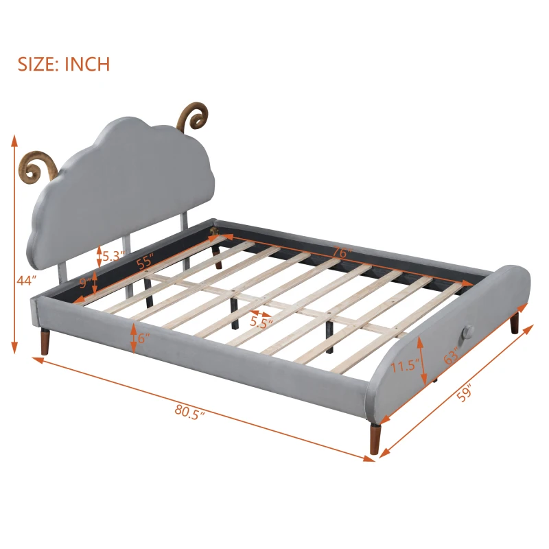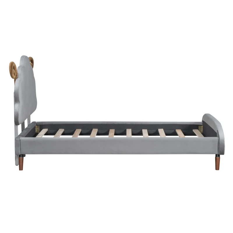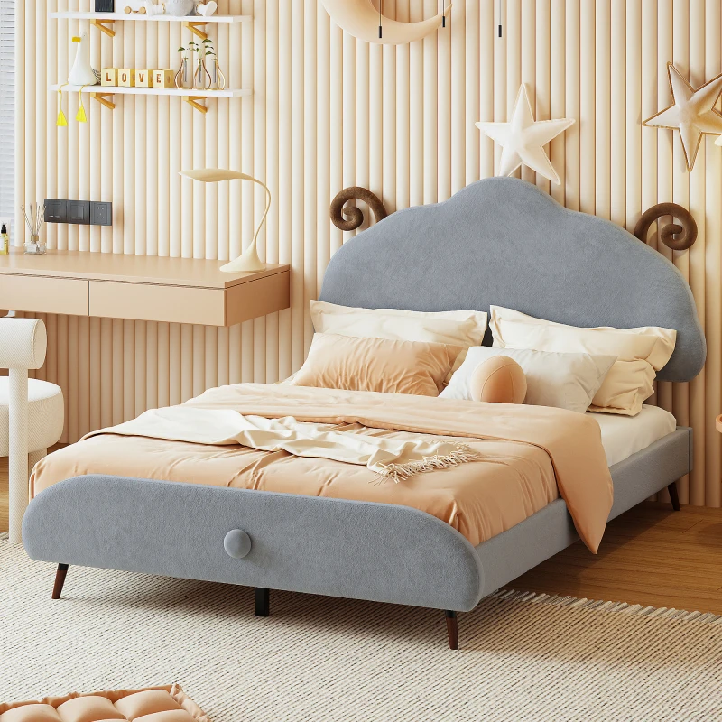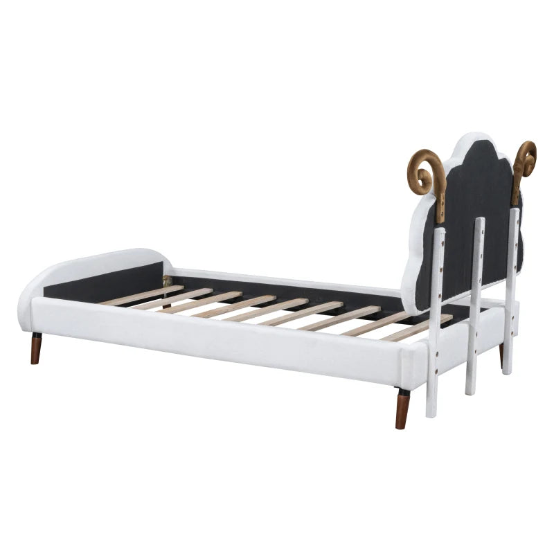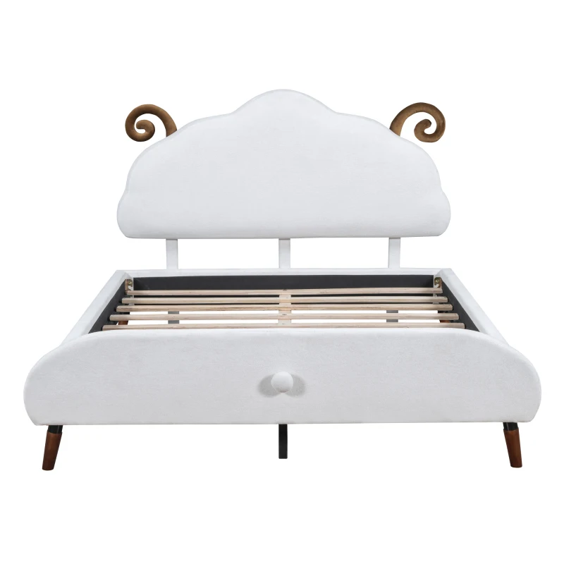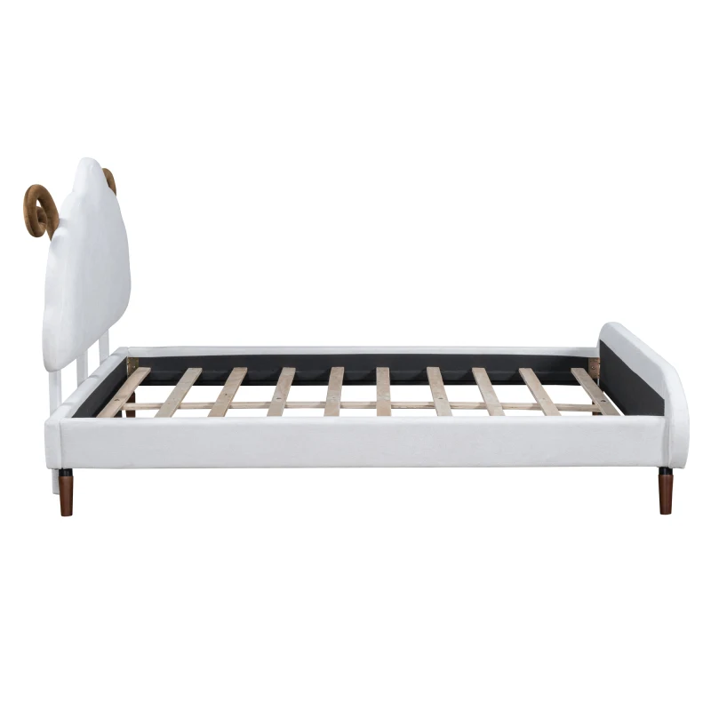 Upholstered Platform Bed with Sheep-Shaped Headboard