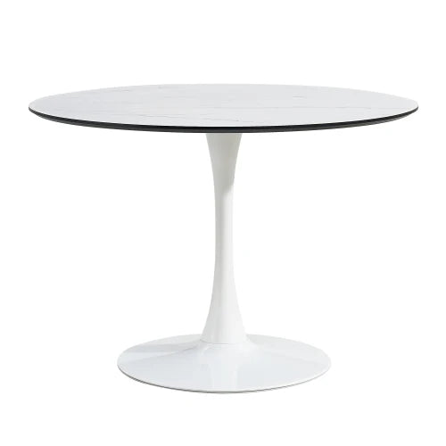 Sturdy round table with a clear and tidy texture designed in the mid-century modernist style. Furthermore, the tulip table has a circular base for maximum sturdiness, stability, and durability.
